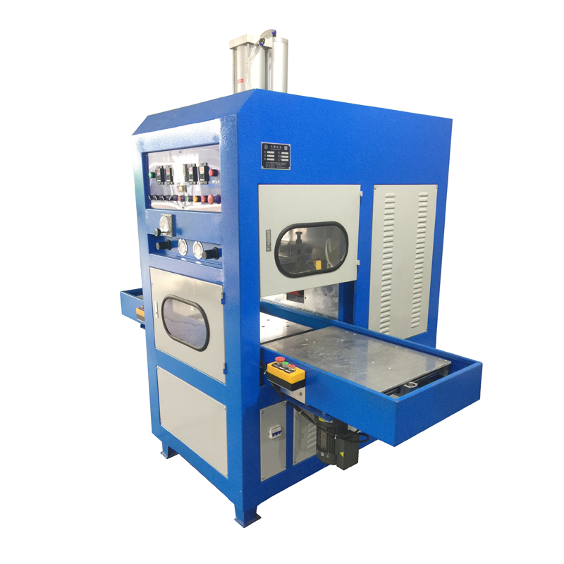 1.整机气缸,定位准,使用寿命长2.本机配有NL-5557高周波火花保护系统,灵敏度极高3.高周波熔断机振荡频率符合国际工业波段标准4.高周波电流调节使用电动调节,VC表显示,调节更方便;5.我司为提高员工在工作中安全,节省人力,将本机设有自动送料台。;6.设有高周波频率稳定器及高周波屏蔽装置,将高频干扰降低;7.自动过流保护系统,增加真空电子管使用寿命,保护模具;8..避免电波干扰,频率漂移